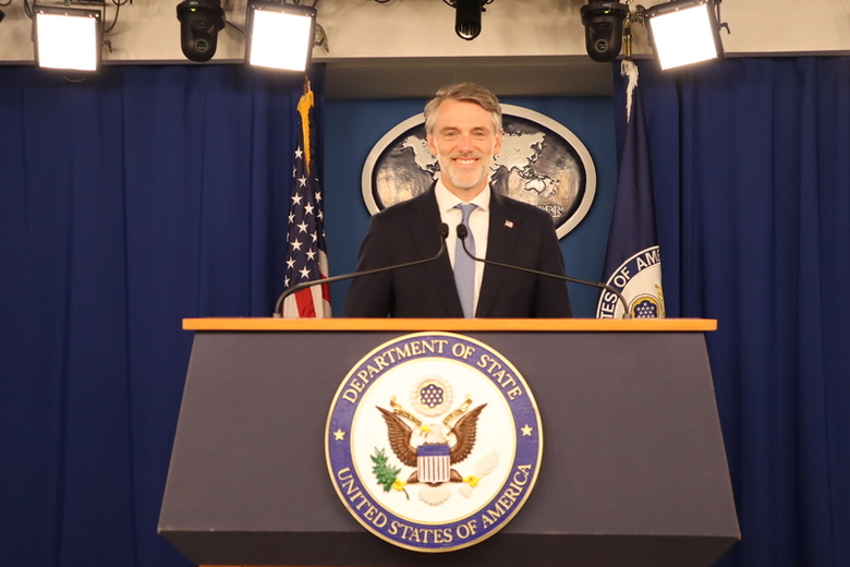 美國國務院6日就亞太經濟合作會議成果對媒體簡報,期間APEC資深官員梅斯回應中國對台灣2026年與會所開出的條件。(中央社記者鍾佑貞華盛頓攝)