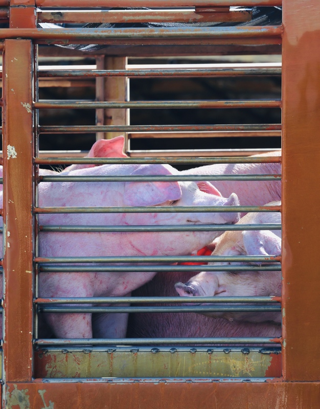 全台活豬禁運、禁宰15天後,6日中午12時起恢復載運,7日0時起恢復拍賣與屠宰。圖為新北市肉品市場畜產業者運送豬隻情形。(中央社記者趙世勳攝)