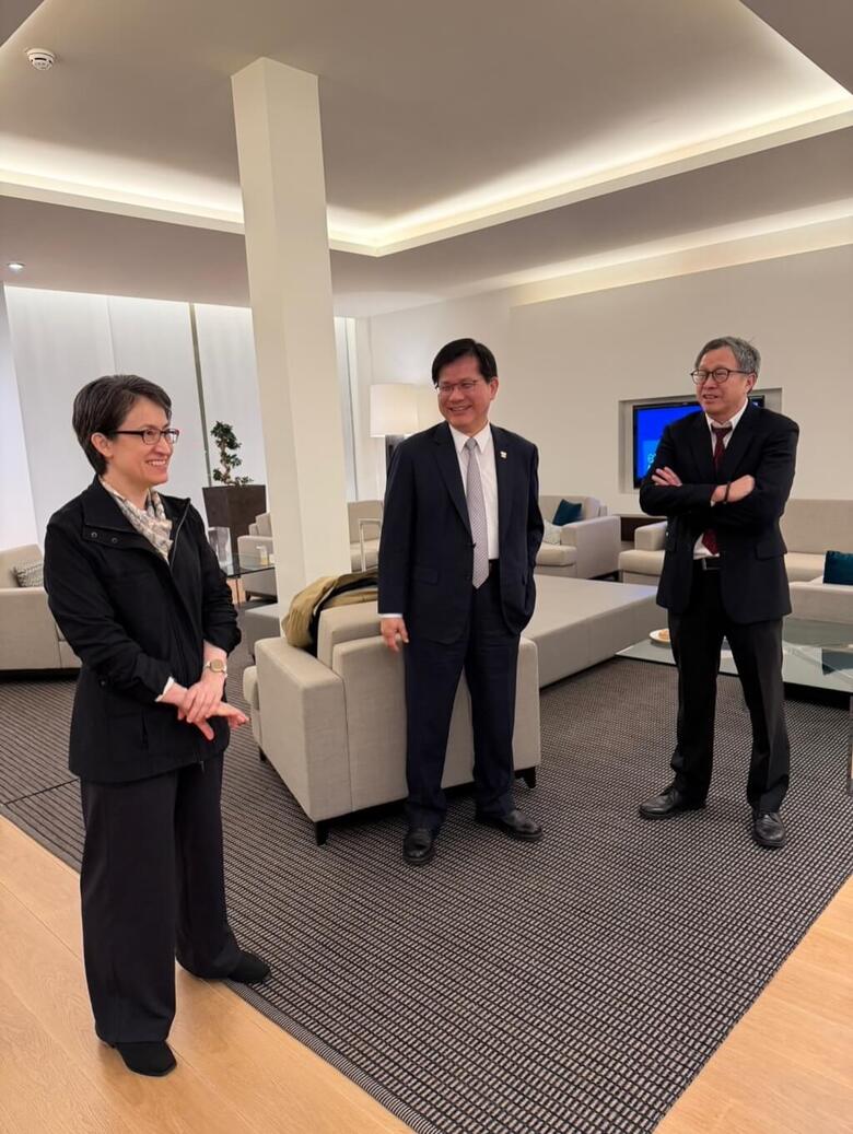 副總統蕭美琴(左)在外交部長林佳龍(右)陪同下前往布魯塞爾,出席IPAC在歐洲議會舉行的峰會。(圖取自threads.com/@dragonforpeople)
