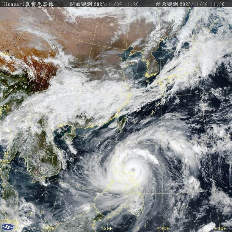 颱風「鳳凰」暴風半徑幾乎籠罩整個菲律賓,圖為氣象署9日發布衛星雲圖。(圖取自氣象署網頁cwa.gov.tw)