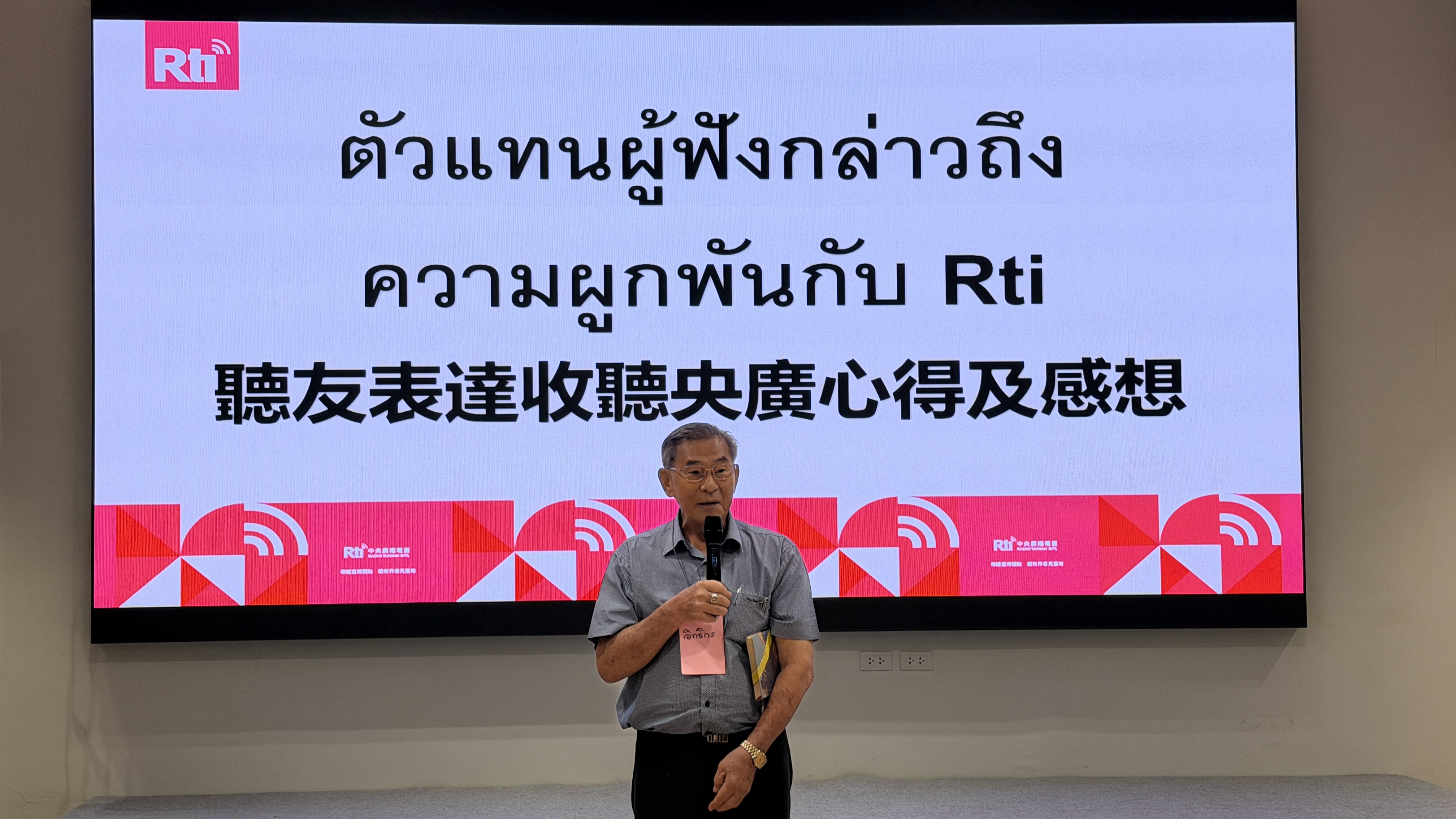 聽友會會長 Mr. Kasem Tungtong 代表聽眾致詞,感謝央廣多年努力與陪伴,「因為有央廣,我們的生活充滿了聲音與故事。」現場掌聲熱烈,氣氛溫馨感人。