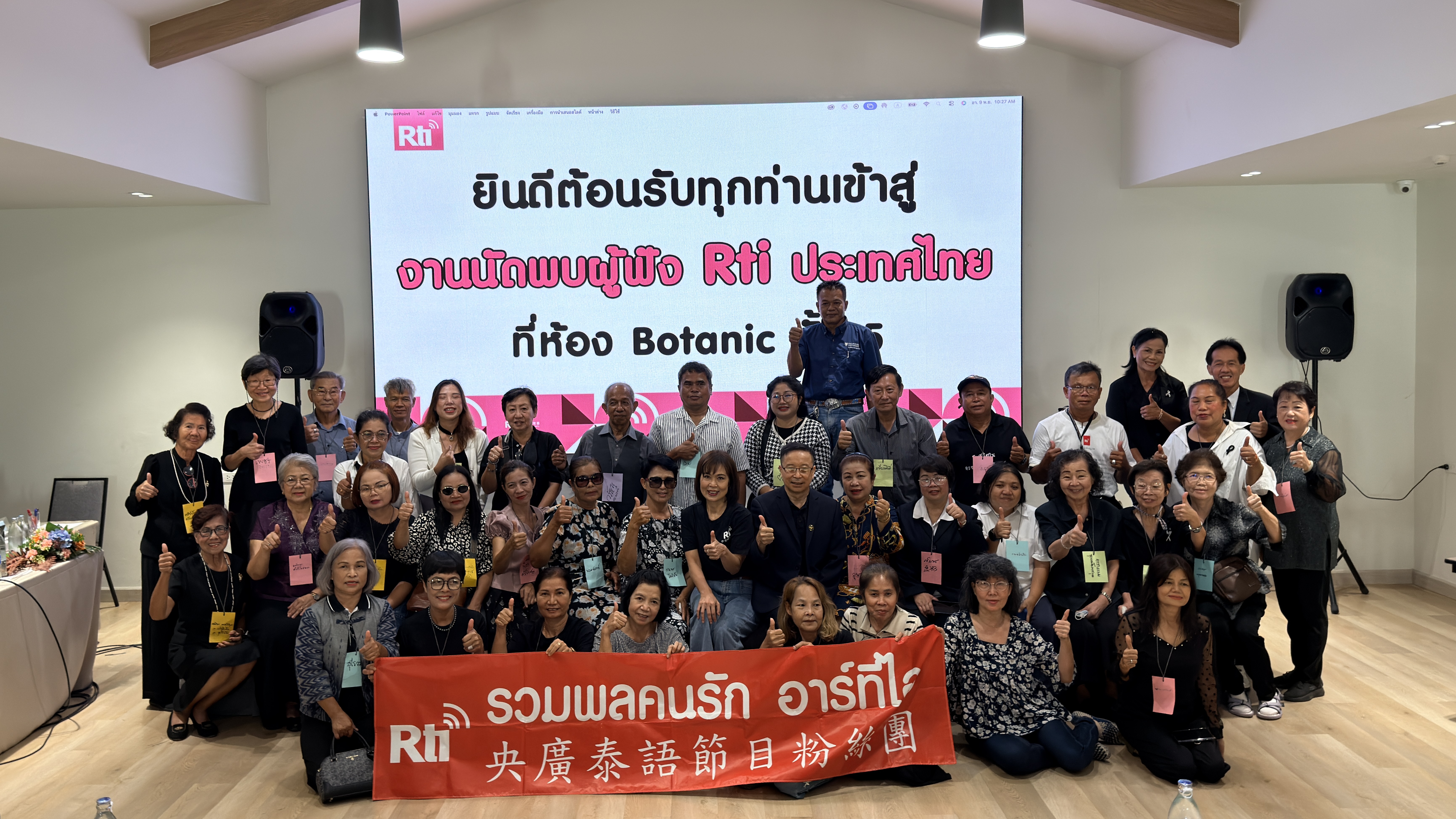 【台泰時報 11 月 09 日曼谷報導】由中央廣播電臺(Radio Taiwan International, Rti)主辦的《第九屆 Rti 泰語節目曼谷聽友見面會》,於 2025 年 11 月 9 日在曼谷 Best Western Chatuchak 飯店溫馨登場。活動開場播放影片,全體與會者默哀,向泰國詩麗吉王太后致上崇高敬意,典禮在莊嚴與溫暖的氣氛中揭幕。