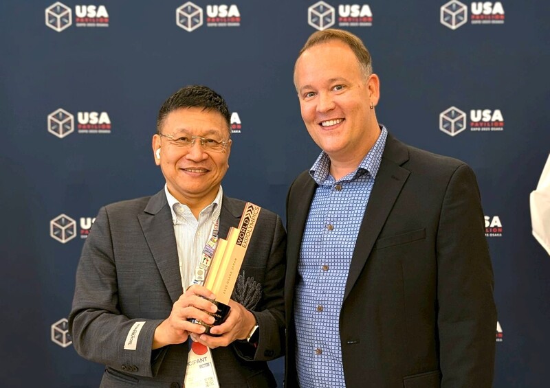 TECH WORLD館新聞稿指出,「世界博覽會奧林匹克評選」頒獎典禮23日在大阪世博美國館(USA Pavilion)舉行,TECH WORLD館由館長邱揮立代表上台領獎。