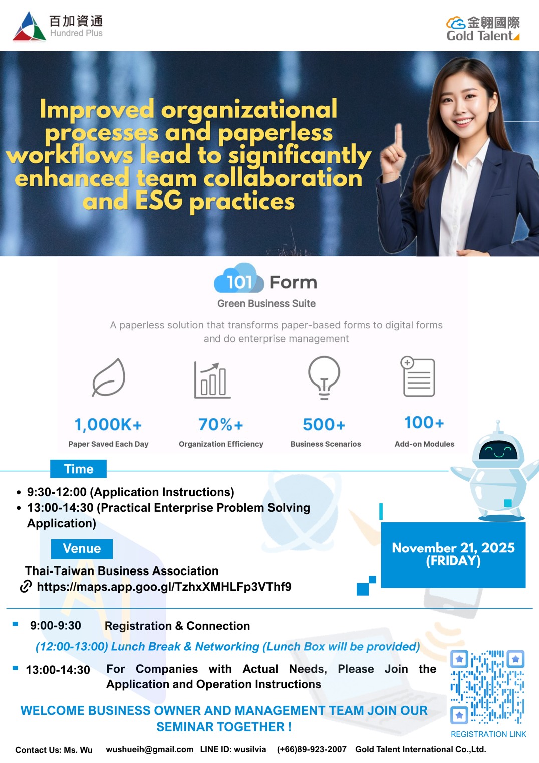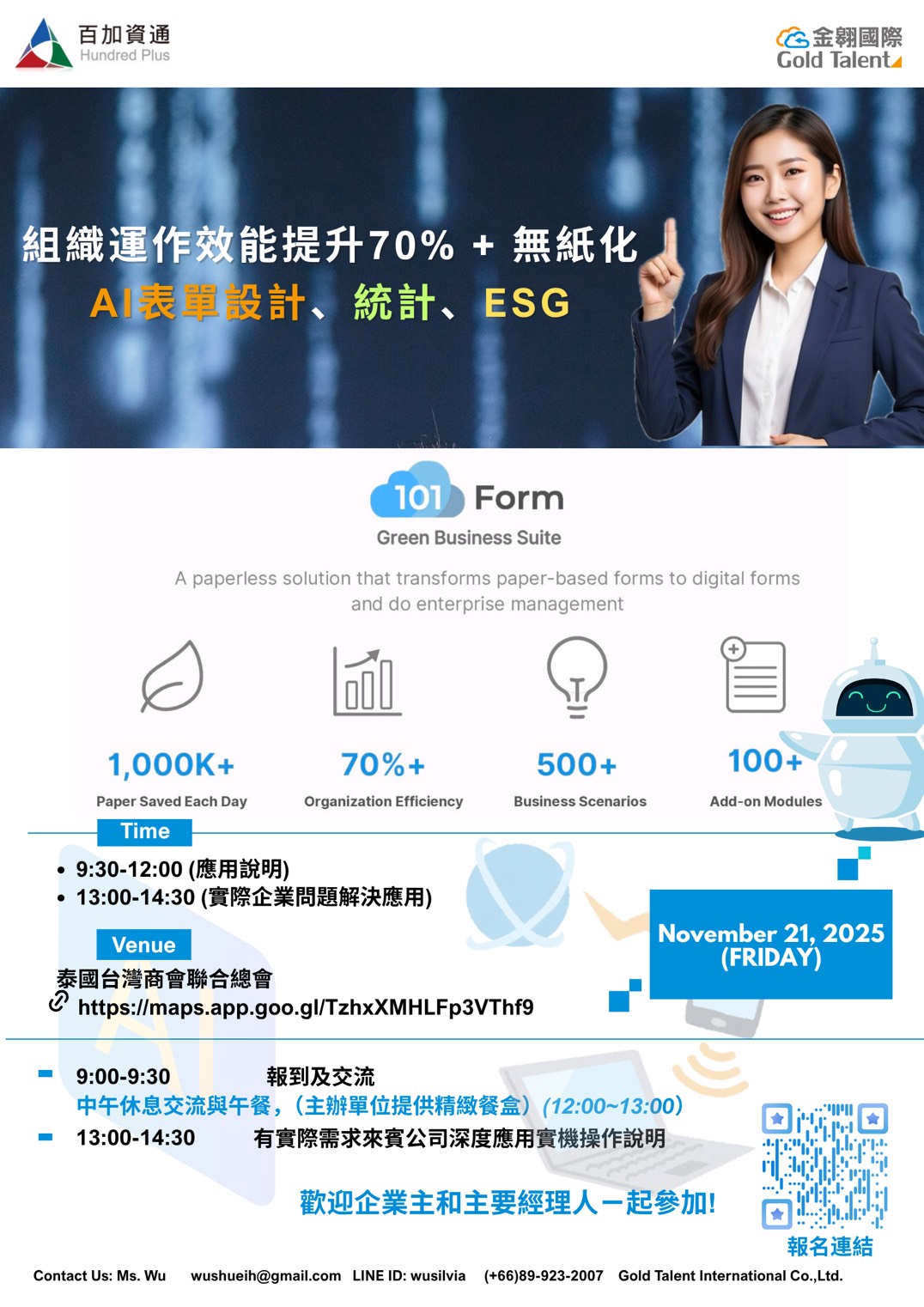 並由金翶國際股份有限公司與台灣知名 EIP 企業百加資通聯合舉辦,免費參加、含午餐、三語服務(中英泰)。