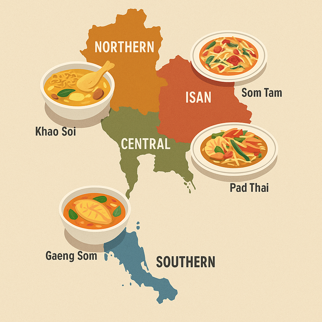 一張餐桌上放什麼,往往是氣候、歷史與人口流動共同決定的結果。泰國菜的「四大菜系」,就是這些條件長久累積的味覺地圖。