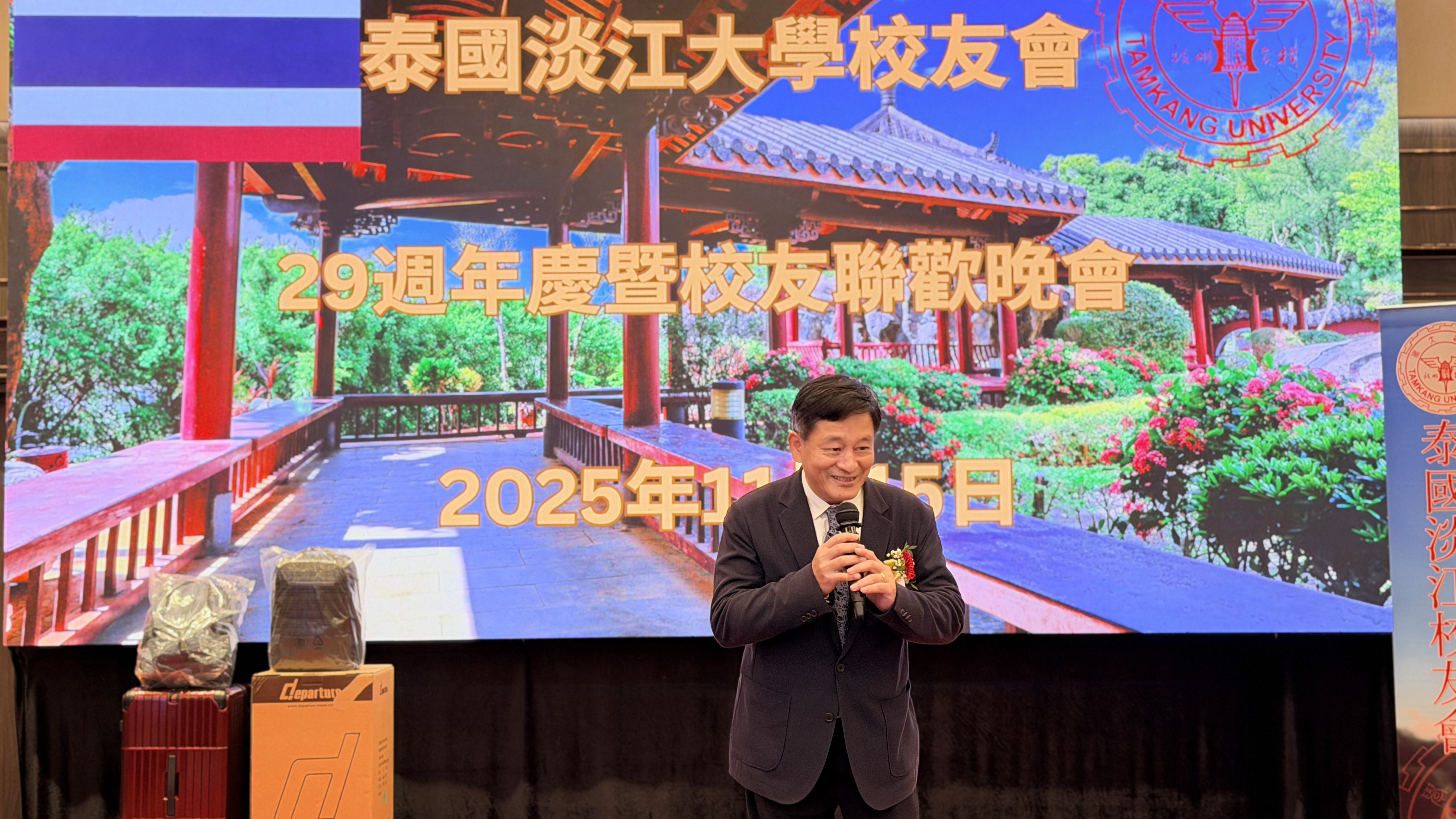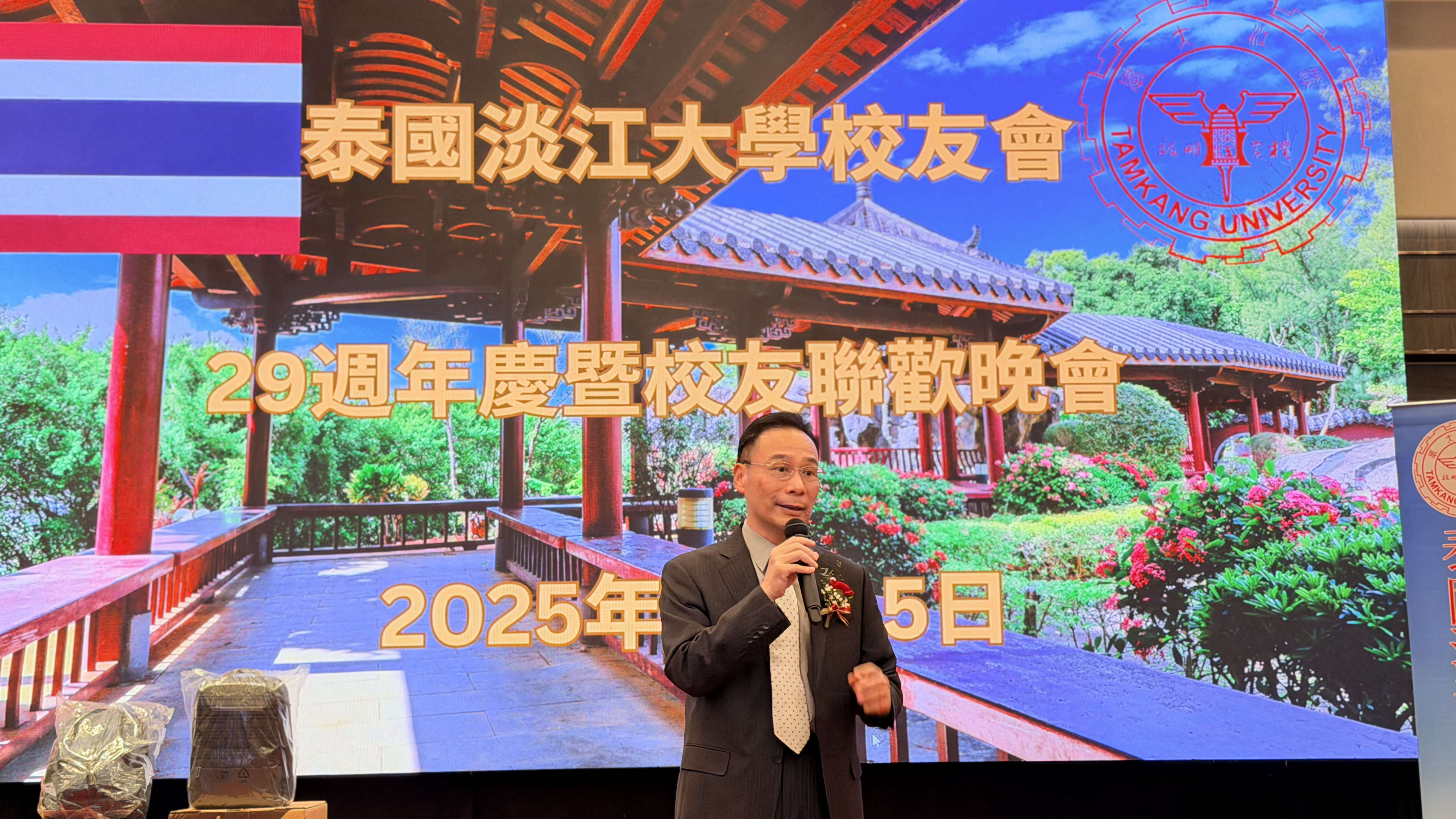 駐泰國台灣代表藍夏禮大使代表政府向校友會致賀,肯定淡江人在泰國各領域表現亮眼,長期為台灣爭光。他表示,代表處將全力支持校友會籌備2026年全球雙年會,相信泰國校友會具備足夠能量呈現國際級盛會。
