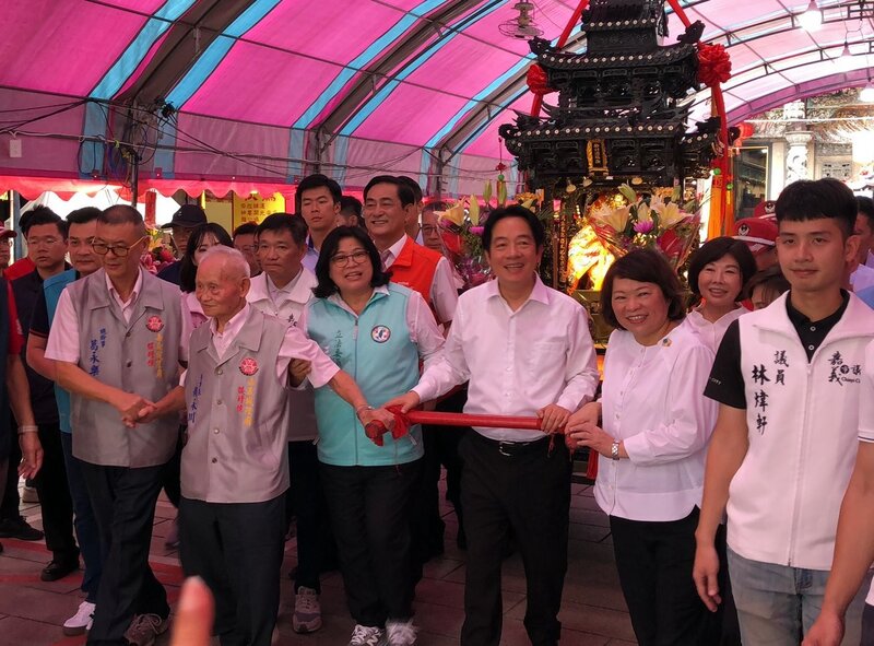 賴總統中午在嘉義市長黃敏惠、民進黨立委王美惠、民進黨秘書長徐國勇、嘉義城隍廟董事長賴永川等人陪同下,參與嘉義城隍廟城隍夜巡諸羅城遶境活動,同時參與起駕儀式。