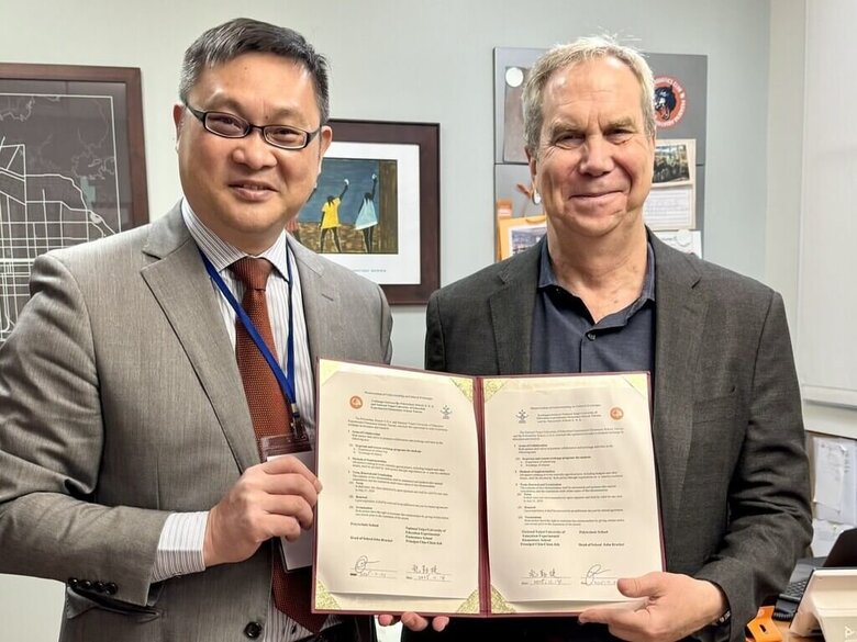 國北教大實小此行在北師附小洛杉磯校友會成員車慶餘、程東海的協助下,透過慈濟人文學校校長左少玲牽線,與Polytechnic小學簽合作備忘錄。