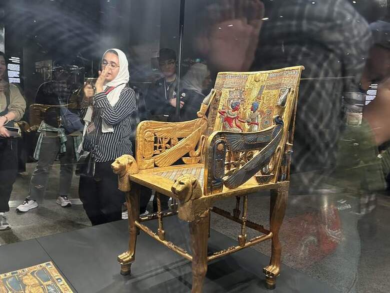 (中央社開羅18日電)大埃及博物館11月1日全面開幕後,全球掀起一股「埃及熱」(Egyptomania),最受人矚目的莫屬「圖坦卡門展廳」,展示法老陵墓出土百年後,首次問世的逾5000件令人嘆為觀止的陪葬珍寶,當中隱藏千年愛情故事。