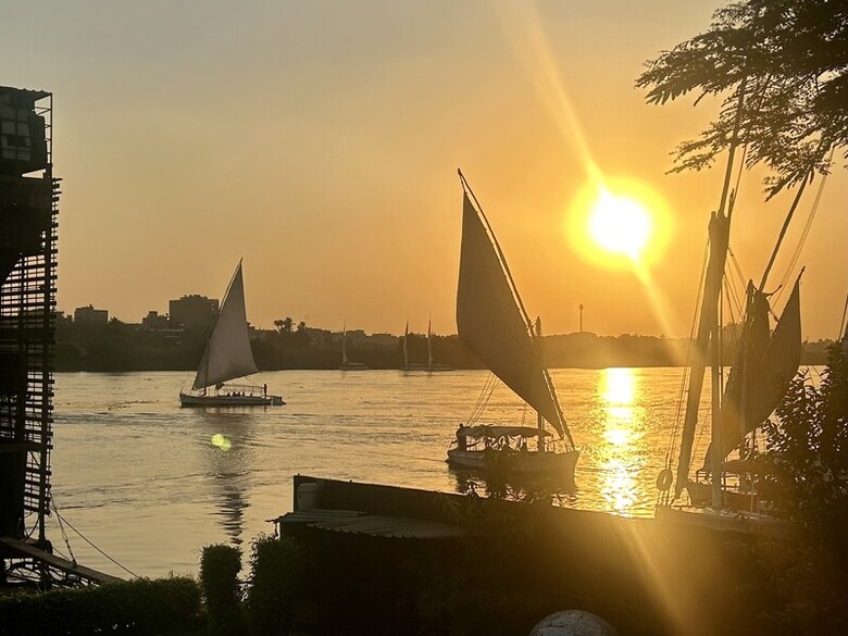 埃及是觀光大國,2024年入境旅客達1570萬人次。在尼羅河上乘坐人力風帆船遊覽河畔風光,是其中一項熱門旅遊活動。(中央社記者施婉清開羅攝)