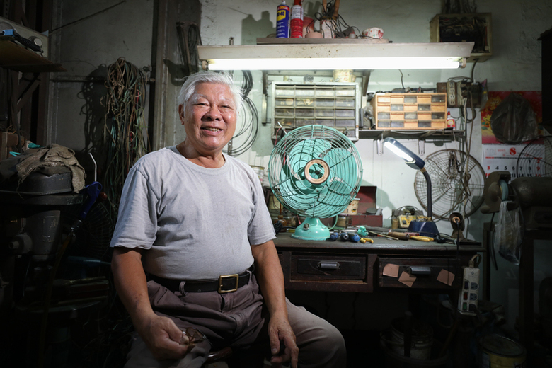 鄭清木1週會修理3、4台老扇,也很清楚他經手的不只是機器,更新零件時也是延續電扇與人們的聯結。他說,他是幫忙維持許多人的兒時記憶、與家人相處的回憶。