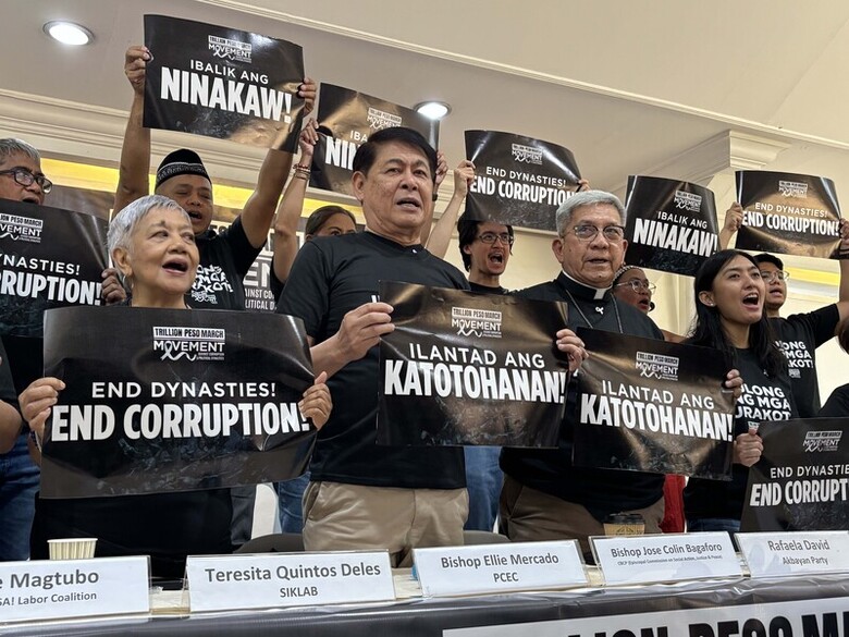 菲律賓防洪工程弊案民怨持續升高,宗教與民間團體24日在天主教馬尼拉總教區總部宣布,30日將在奎松市人民革命紀念碑前發動大示威,要求政府終結貪污以及家族政治。(中央社記者林行健馬尼拉攝)
