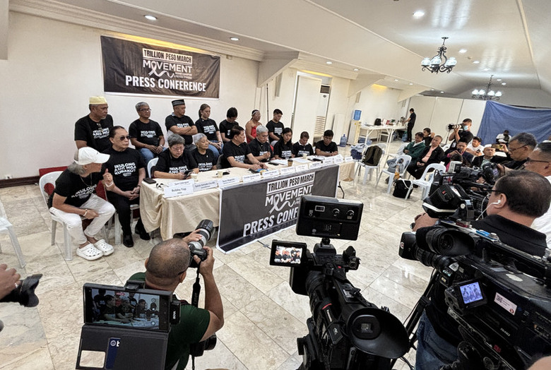 由菲律賓天主教、伊斯蘭教、勞工、婦女、青年、都市貧民、退休將領、原住民等各界代表組成的「1兆披索遊行運動」(TPMM)組織,今天在天主教馬尼拉總教區總部舉行記者會,宣布將於30日在奎松市(Quezon City)乙沙大道(EDSA)人民革命紀念碑前發動第2次的「1兆披索遊行」(Trillion Peso March)。