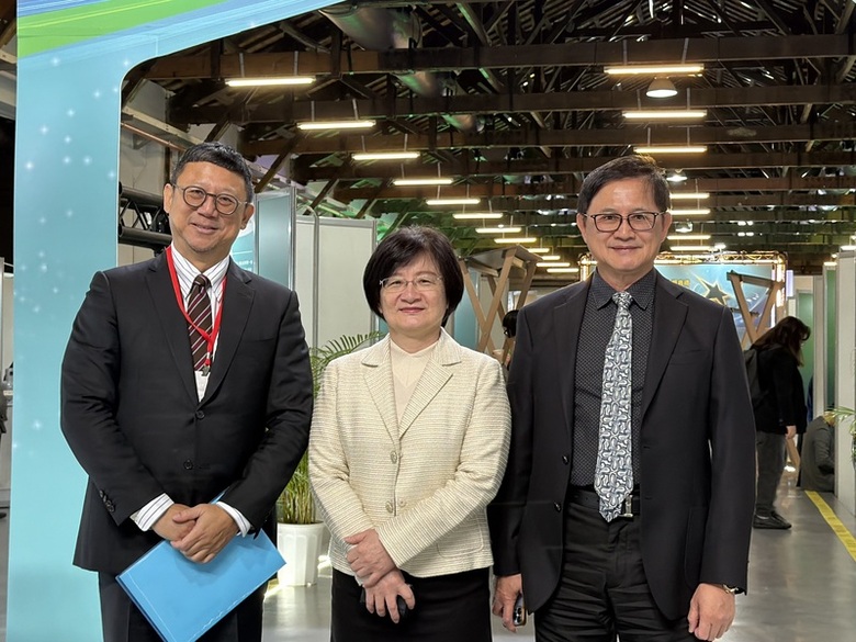 和碩董事長童子賢(右1)26日出席經濟部科技新創競賽頒獎典禮受訪表示,台積電提告前資深副總經理羅唯仁轉任英特爾涉洩密,將考驗台灣在智財權跨國處理的司法實務運作。(中央社記者吳家豪攝)