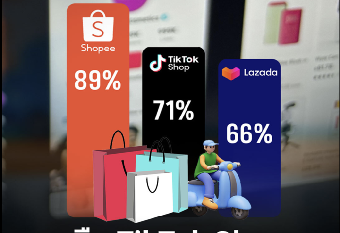 (台泰時報11月27日電)市場研究機構 Milieu Insight 公布最新「泰國網購行為」報告指出,在過去6個月內的購物紀錄中,TikTok Shop 的使用率達 71%,已超越 Lazada 的 66%,成為泰國第二大熱門電商平台,僅次於市占最高、達 89% 的 Shopee。此份調查以 500 名泰國消費者為樣本,讓受訪者選擇曾在何種網購平台消費,合計超過十項選項,結果顯示目前泰國電商市場由三大平台主導。