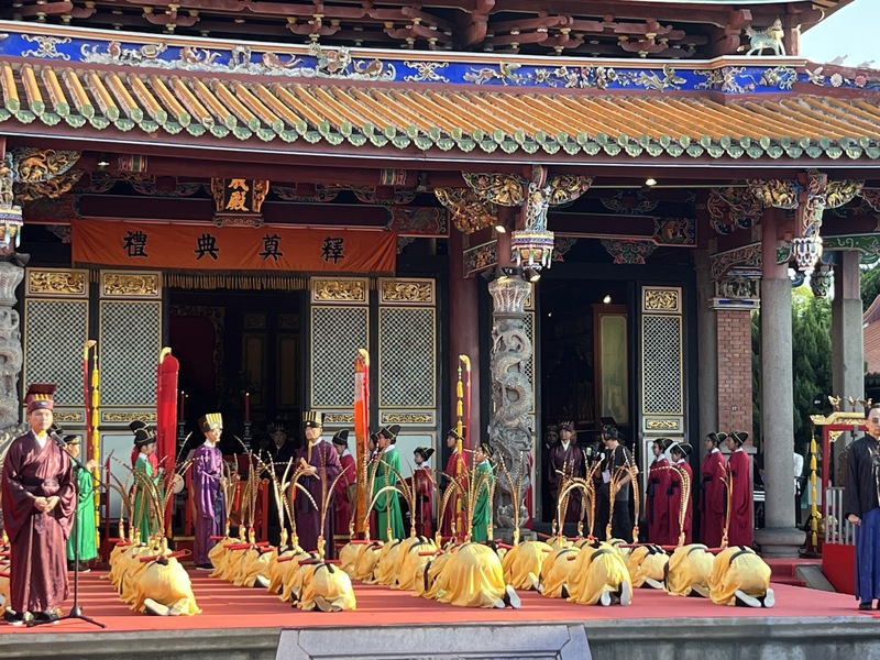 台北市孔廟管理委員會表示,歷經籌備的古禮儀式,演繹鼓樂八音及佾舞,以此敬仰聖賢,禮生由在地仕紳及明倫高中、麗山高中學子擔任,樂生由重慶國中學生擔綱,佾舞由大龍國小佾生以優雅整齊肢體律動演出,開平餐飲學校師生並為典禮設計饌品,藉此讓學子世代傳承儒學。