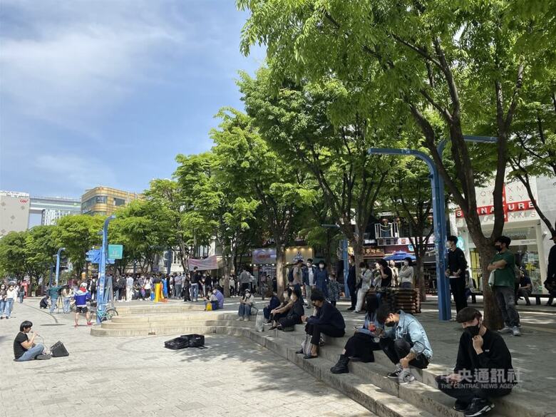 圖為韓國首爾弘大鬧區人潮。(中央社檔案照片)