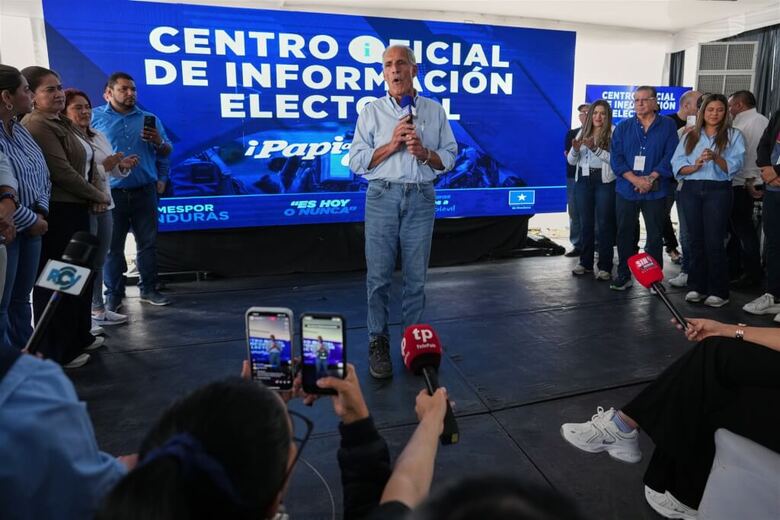 宏都拉斯總統選舉計票陷入膠著,右派在野「國家黨」候選人阿斯夫拉(中)1日以39.92%得票暫居第1。(美聯社)