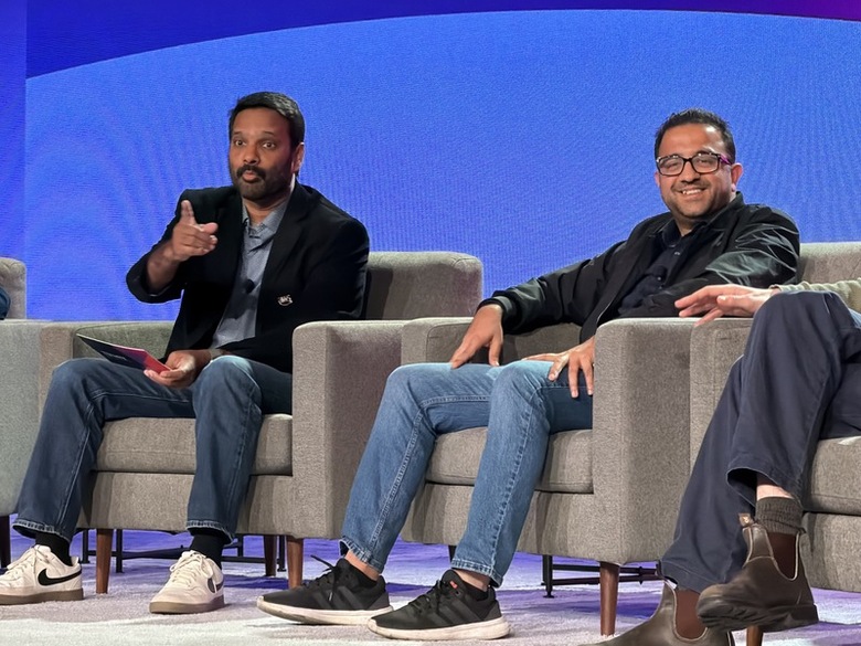 雲端服務供應商AWS 1日在美國拉斯維加斯舉辦re:Invent年度大會,AWS生成式AI創新中心總監艾拉普羅(Sri Elaprolu,圖左)出席座談表示,距離機器人大規模普及,還需數年時間。右為輝達機器人與邊緣運算生態系負責人戈爾(Amit Goel)。(中央社記者吳家豪拉斯維加斯攝)