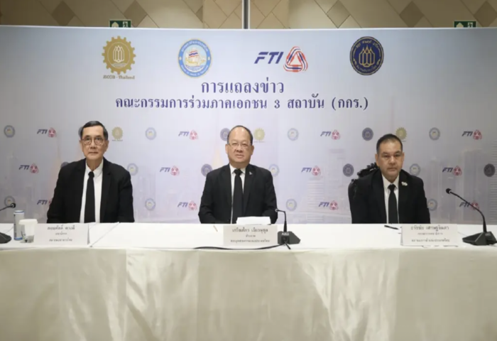 JSCCIB.本次記者會由泰國工業總會主席格良凱(Kriangkrai Thiennukul)主持,並有泰國銀行公會秘書長高博沙(Kobsak Duangdee)與泰國商會秘書長塔瓦猜(Thavatchai Setthachinda)共同出席。格良凱指出,2026年全球經濟仍面臨調整,中國因內需疲弱而轉向出口以支撐成長,與其五年計畫方向一致。由於中國產能外溢,相關商品在國際市場的競爭將更為激烈,預期泰國製造業及出口商將承受更大壓力。