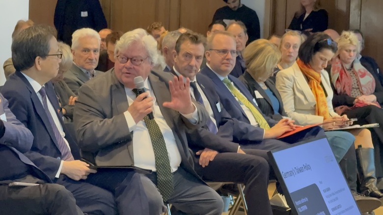 德國國會友台小組主席徐德分4日在柏林台灣會議「德國對台政策」演說中提到,德國各黨因歷史因素,對中國政策有不同的考量及看法,對中政策不清且無連貫性,將有損德國利益。他呼籲德國應建立跨黨派且一致的對中及對台方針。(中央社記者林尚縈柏林攝)