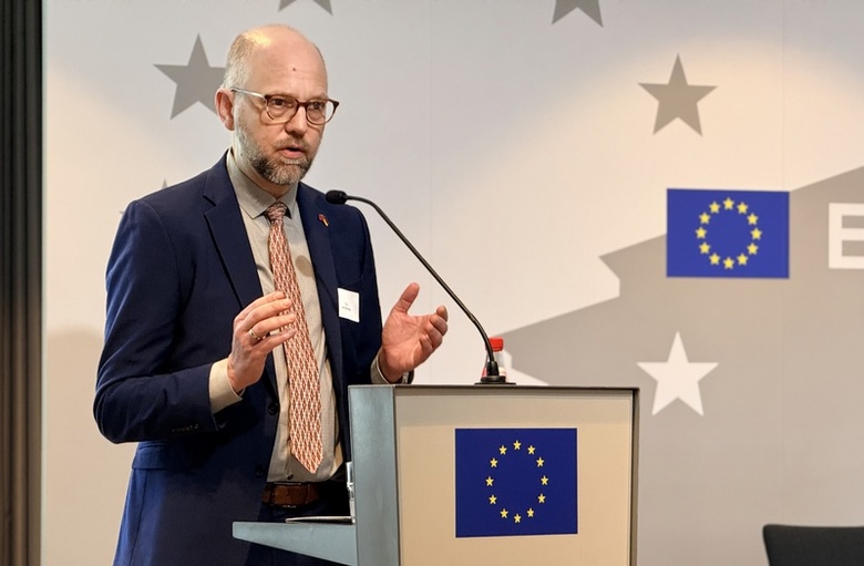 第4屆柏林台灣會議4日於柏林歐洲之家舉行。主辦單位台德民間論壇德方主席包瑞翰致歡迎詞時強調,「台灣有事,就是全球有事」,為會議揭開序幕。(中央社記者林尚縈柏林攝)