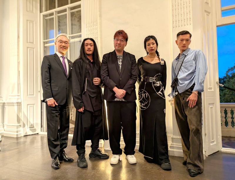 國際時尚設計界盛事倫敦時裝週今年首見台灣以「國家隊」形象亮相,18日在倫敦當代藝術學會(ICA)舉辦展示會,駐英國代表姚金祥(左1)及INFDARK(左2)、APUJAN(中)、JENN LEE(右2)和RAY CHU(右1)等4個品牌的設計師和創意總監出席。(中央社記者陳韻聿倫敦攝)