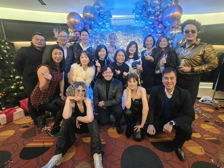 卑詩省台灣商會成員們在不同的專業領域都有傲人成就,年度晚宴上展現Disco復古活潑一面。眾人稱,新的一年不僅要為自己的事業打拼,也樂意為加拿大企業搭橋牽線,一起前進台灣。(中央社記者程愛芬溫哥華攝)