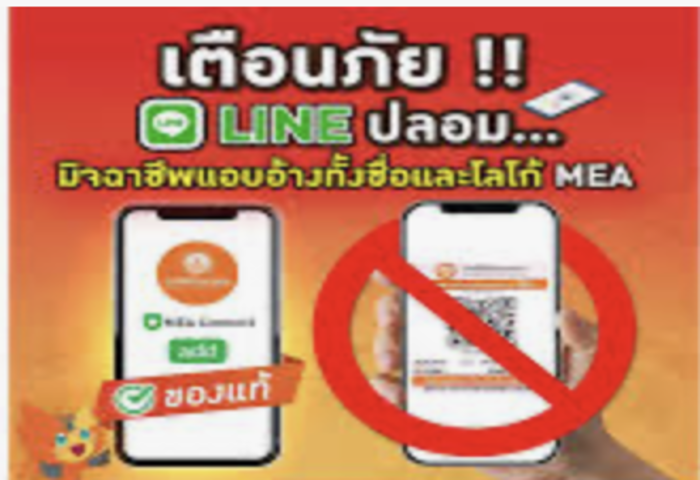 (台泰時報12月10日電)曼谷電力局(Metropolitan Electricity Authority,MEA)9日發布緊急公告,指出近期有詐騙集團假冒該局名義,在LINE及多個網路平台建立不實帳號,意圖誘騙民眾支付服務費或填寫個資,已造成高度資安與財務風險。當局提醒民眾須提高警覺,不得透過非官方管道進行任何交易。