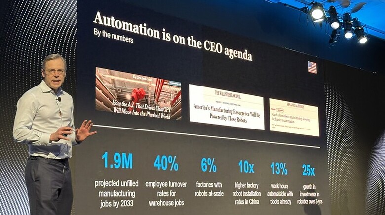 麥肯錫資深合夥人羅伯森指出,過去短短3年內,全球對機器人領域的私人投資成長了25倍,反映市場對產業未來前景看好。(中央社記者張欣瑜舊金山攝)