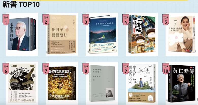 儘管台灣圖書市場仍未回溫,但從今年各家通路公布的榜單仍能清楚看見2025年的閱讀偏好。科技快速發展帶動商業類閱讀熱潮,以台積電創辦人張忠謀親筆回顧創建歷程的《張忠謀自傳全集(上下冊)》最受矚目,不僅穩坐誠品與博客來年度新書暢銷冠軍,在Readmoo讀墨平台也名列第三,可說是橫掃多平台。