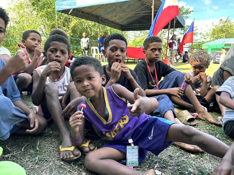 耶誕節將屆,旅菲台商企業KOTEN公司成立的慈善基金會,14日遠赴呂宋島中部山區賑濟原住民。圖為當地艾沓族兒童開心享用台商贈送的棒棒糖。(中央社記者林行健波拉克鎮攝)