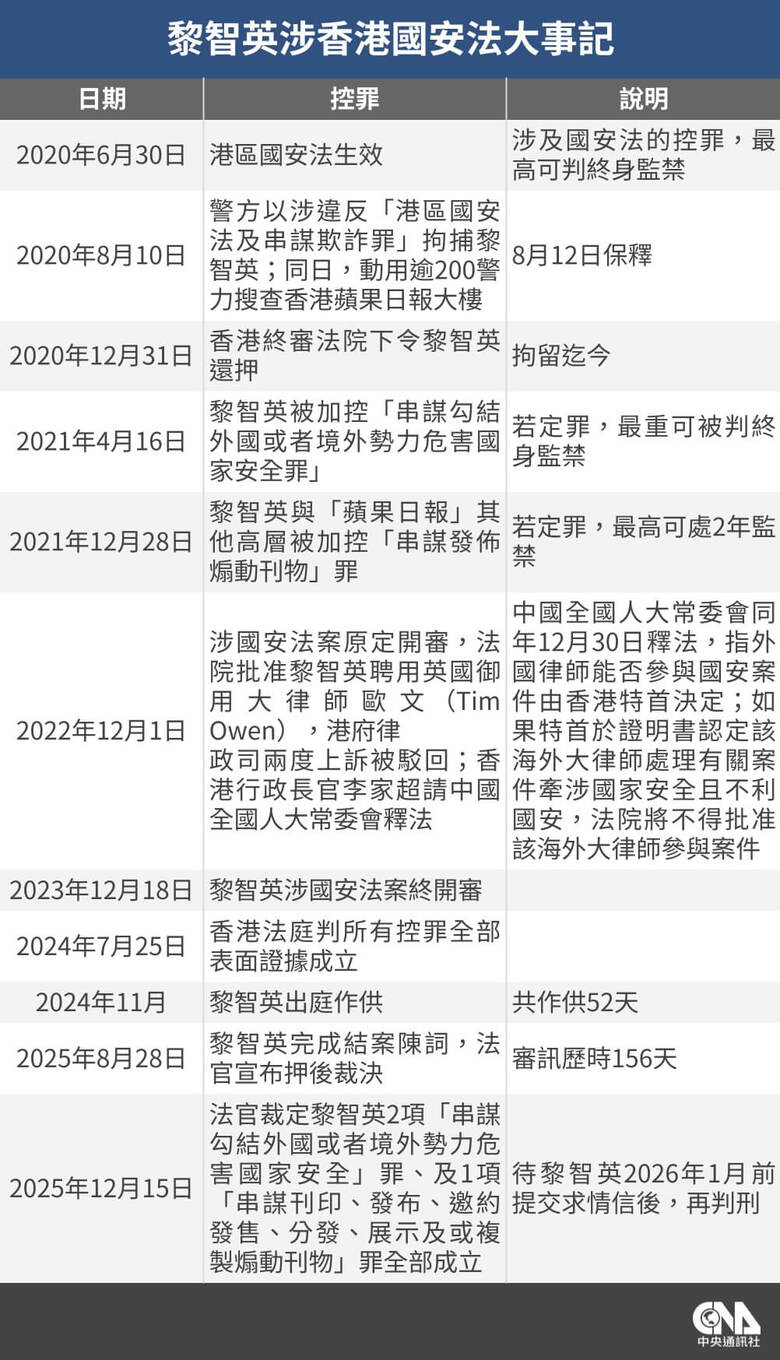 黎智英因為觸犯港區國安法等,今天被法官裁定他2項勾結外國勢力危害國家安全罪名及1項發布煽動刊物罪名成立,前者屬國安法罪行,後者為一般刑事罪行。