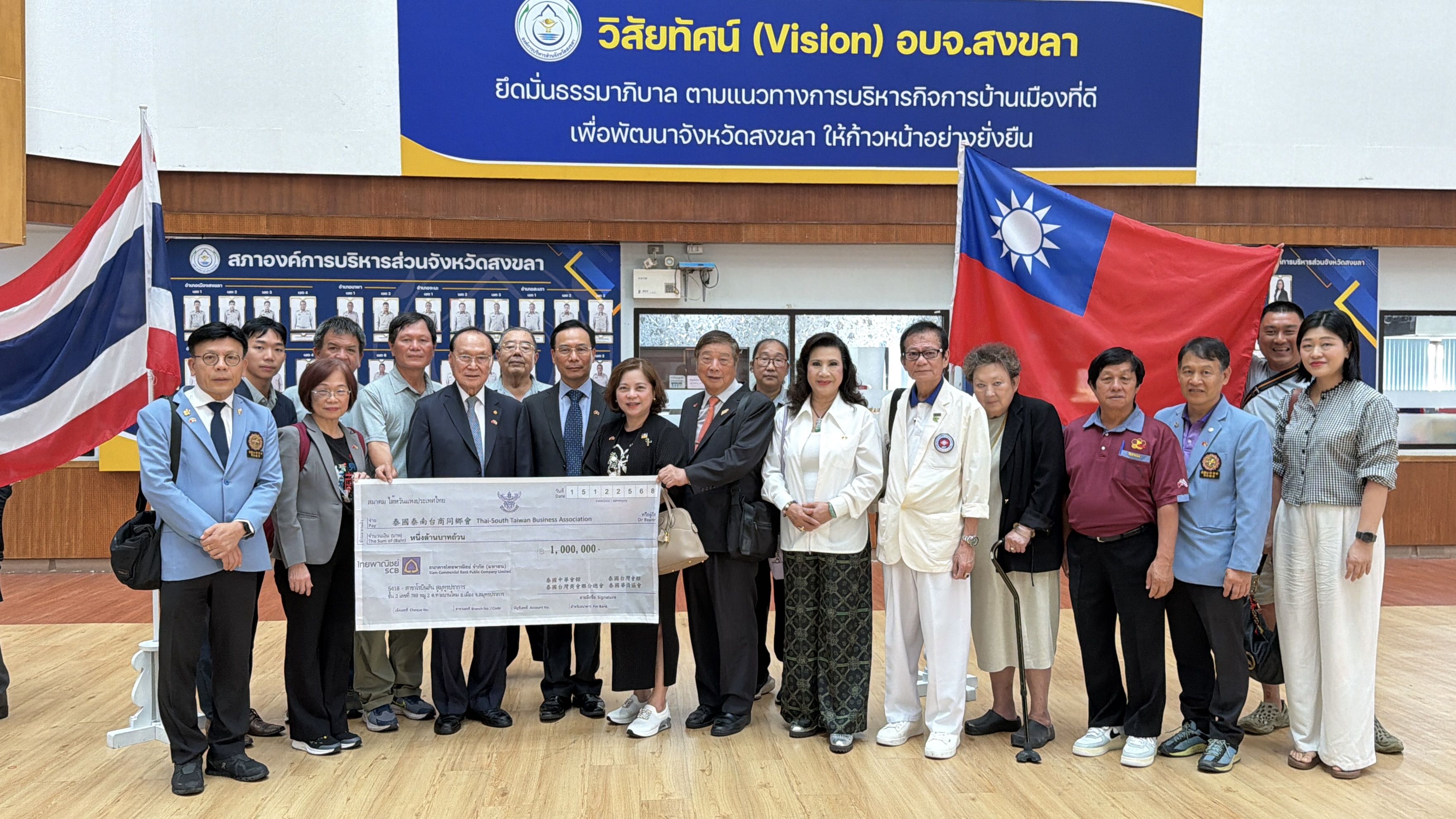 (台泰時報合艾電)面對泰國南部合艾地區近日遭逢嚴重水災,旅泰四大僑團於12月17日共同前往合艾市,向宋卡府政府及泰國泰南台商同鄉會捐贈賑災善款,捐獻總金額近新台幣六百萬元,協助投入災後重建與民生復原工作。此次行動以泰華僑界為主體,展現僑團長期深耕在地、關懷社會的行動力;台灣駐泰代表處藍夏禮大使全程出席擔任見證人,並另代表台灣政府捐贈善款予泰南紅十字會。