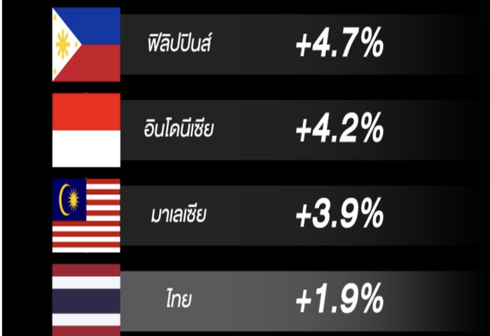 (台泰時報12月18日電)分析指出,過去10年間泰國經濟成長明顯落後周邊國家,國內生產毛額(GDP)年均成長率僅約1.9%,在亞洲主要經濟體中排名後段,顯示結構性問題長期未解,未來成長動能仍面臨挑戰。