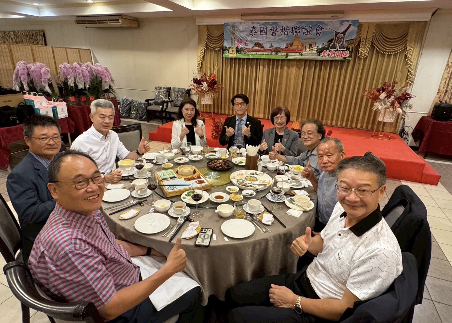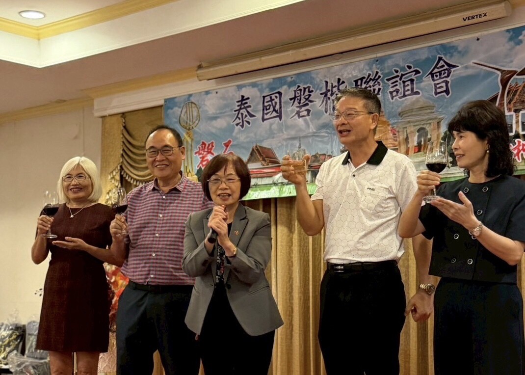 (台泰時報曼谷電)由楊菁萍、張曉亭、劉世璘、蔡啟雄與林黎郎等五位旅泰台商共同擔任東道主的2025年第四季「磐楷聯誼會聯誼餐會」,昨晚於曼谷舉行。台灣駐泰代表處董思齊公使、僑務組王懷德副組長、經濟組段應萱與林甘泉秘書,以及移民室林俊良秘書夫婦應邀出席,與長年深耕泰國市場的台商齊聚一堂,在溫暖而務實的交流氛圍中,回顧磐楷聯誼會多年來累積的企業精神與僑界影響力。