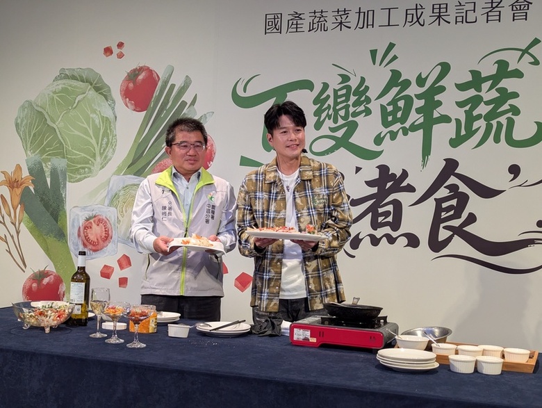 發表會今天在台中舉辦,邀請藝人李易示範5分鐘內,完成國產加工蔬菜料理,並展示各種國產蔬菜加工技術突破成果產品。