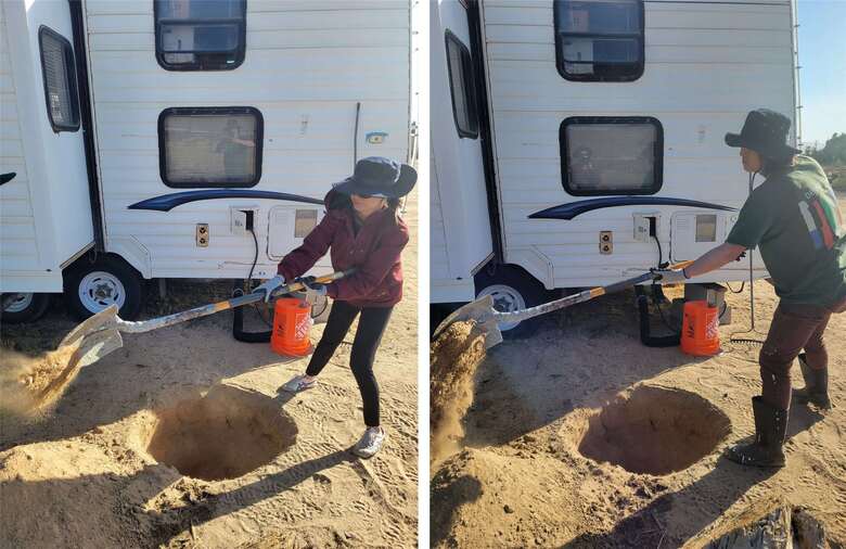 於是,他們決定改到露營車上生活,但沒有接水電,車上廁所也無法使用,因此,他們在沙漠中挖出200尺深的洞來取水,再接電,花了一週的時間才接好水電,不過,隨時有跳電的機會,尤其在微波食物的時候,絕對要拿著手電筒,淋浪說,在那裡每晚都是「燭光晚餐」,那種想哭、臉上卻會帶著微笑的狀態,實在太難忘。