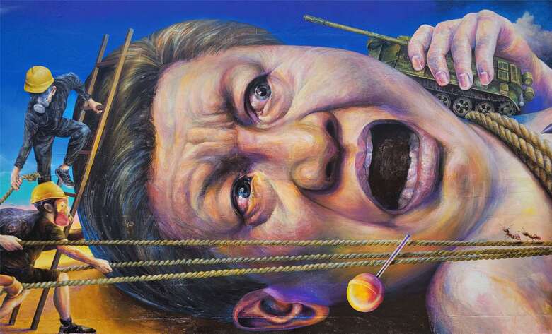 淋漓則說,大家因為生活在恐懼中,不敢推倒極權、不敢推倒共產主義,所以不敢說太多,她期盼,這幅壁畫能引領觀眾超越心中的恐懼,給自己更大的想像和更大的勇氣去面對未來。
