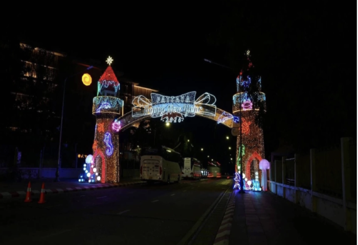 (台泰時報12月22日電)為迎接歲末與2026年新年到來,芭達雅市政府自12月19日起至2026年1月4日,在市區多處重要節點啟動歲末燈光布置,結合節慶活動與觀光行銷,期盼為城市增添節日氛圍,並吸引國內外遊客到訪。