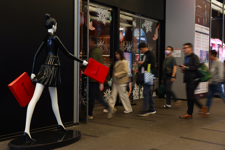 圖為台北信義區一處百貨營業時間一到就吸引不少人潮入內消費。(中央社記者王騰毅攝)