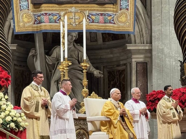 教宗良十四世上任後主持首次耶誕子夜彌撒,講道主軸強調「希望與和平」。(駐教廷大使館提供,中央社記者黃雅詩羅馬傳真)