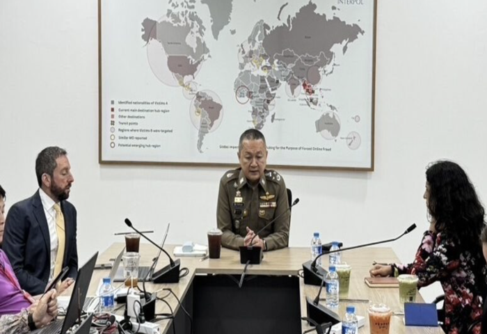 (台泰時報10月01日電)泰國警政高層9月30日與美國國務院國際麻醉品暨執法事務局(INL)代表舉行會談,聚焦跨國電信詐騙與網路犯罪的聯合打擊。此次會議由警察總監檢察官兼國際反詐騙暨人口販運管理中心(Warroom IAC)指揮官塔猜(Tatchai Pitaneelabut)主持,雙方就提升跨境合作與執法能力交換意見。