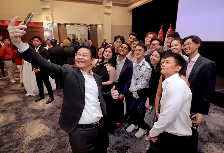 邁入2026年,新加坡總理黃循財表示,新加坡的穩定是吸引更多企業深耕因素。圖為黃循財(持手機自拍者)2025年10月出席活動與民眾互動。(新加坡數位發展及新聞部MDDI提供,中央社記者吳昇鴻新加坡傳真)