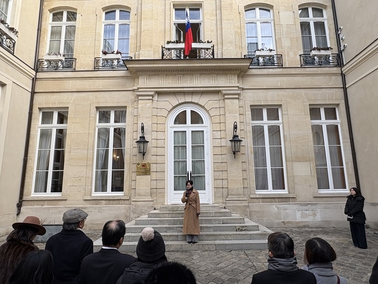 駐法國台北代表處1日舉行元旦升旗典禮,駐法代表郝培芝說,過去一年,法國挺台力道顯而易見。(中央社記者曾依璇巴黎攝)