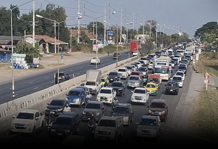 交通狀況最為明顯的區域,集中於呵叻府孔縣與暖素縣一帶的主要交叉路口,以及沿線加油站與休息點周邊。由於返城車輛大量湧入,友誼公路進城方向車道幾乎全線飽和,行車呈現走走停停狀態,對長途駕駛造成不小負擔。
