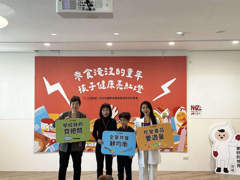 兒福聯盟研究暨組織發展處處長黃韻璇(左一)公布兒盟最新台灣兒童飲食調查報告,呼籲要攝取原型食物並減糖,給孩子健康成長環境。(楊雨青攝)