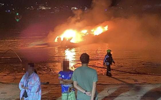 (台泰時報1月7日電)泰國南部觀光重鎮普吉府查龍灣碼頭今(7)日清晨發生嚴重火警,一處停泊多艘快艇的碼頭突發大火,至少10艘高速快艇遭到焚毀。警方已封鎖通往現場的相關道路,讓消防與救援車輛進出救災,截至發稿時,火勢仍未完全受控,損失金額初估達數百萬泰銖。