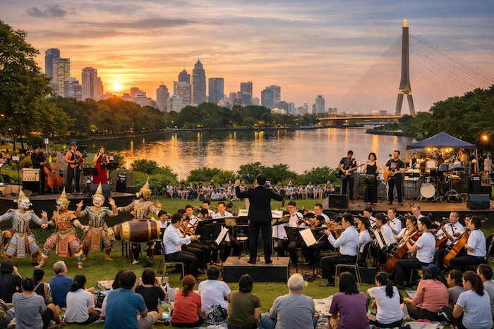 市府表示,本次系列演出陣容多元,橫跨古典、傳統與當代音樂形式,包括知名的 曼谷皇家交響樂團(RBSO)、傳統孔面具舞與鼓樂演出,以及多組爵士與流行樂團,演出地點涵蓋倫披尼公園(Lumphini)、班嘉奇蒂公園(Benjakitti)、拉瑪八世公園(Rama VIII)及聖堤差帕甘公園(Santi Chai Prakan)等市區重要綠地。