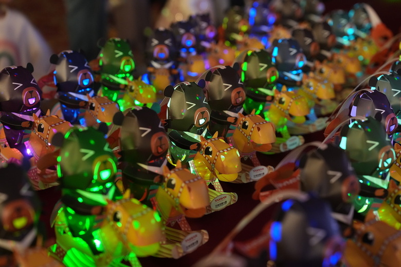 交通部觀光署9日在台北圓山大飯店舉行2026台灣燈會主燈暨小提燈造型發表記者會,會場展示「喔熊馬抵嘉」小提燈,結合生肖「馬」以及台灣觀光代言人「喔熊」,突破以往純生肖設計,以喔熊騎在木馬上為造型,就像小朋友騎在木馬上玩耍搖晃,極富童趣。(中央社記者徐肇昌攝)
